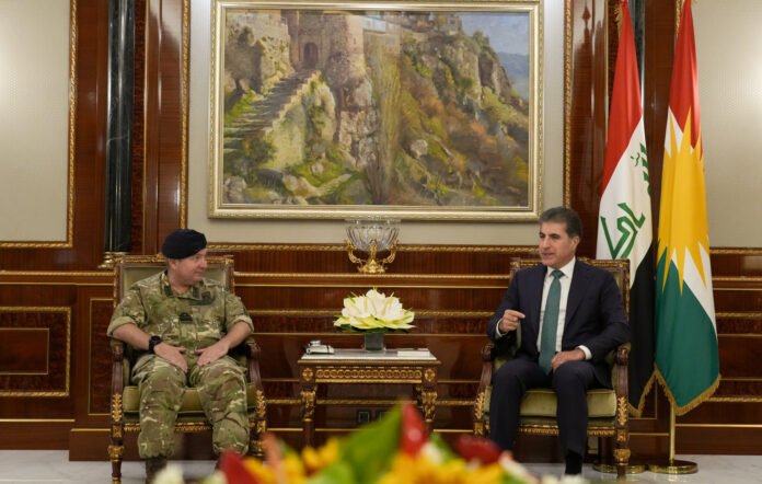 Kurdistan Region President Nechirvan Barzani met with British Vice Admiral Edward Ahlgren in Erbil to address growing security concerns across the Region. The discussions focused on recent drone strikes and the continued threat from ISIS militants.