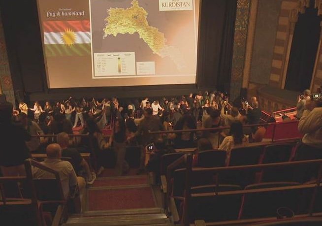 A large map of Kurdistan hangs in the festival lobby. Although it is not a recognized state, Kurds consider it their occupied homeland. This week, they are sharing that message through their art.
