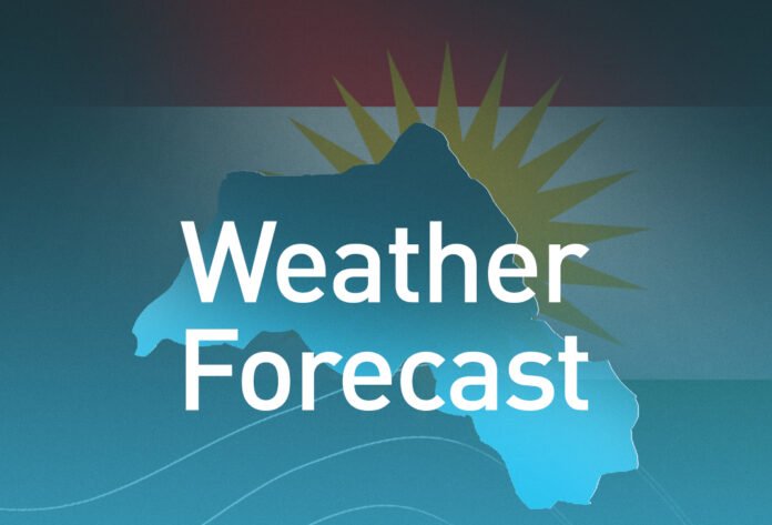 Meanwhile, Duhok will experience cooler weather, with highs of 30°C and lows of 15°C. Halabja will range from 22°C to 33°C, while Zakho’s range will be 18°C to 32°C. Soran will record between 14°C and 31°C, Raperin between 20°C and 32°C, Garmian between 23°C and 37°C, and Haji Omran between 8°C and 24°C.