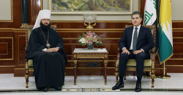 Kurdistan Region President Nechirvan Barzani met with a delegation from the Russian Orthodox Church to discuss Christians in Kurdistan. The delegation was led by Metropolitan Anthony, head of external relations.