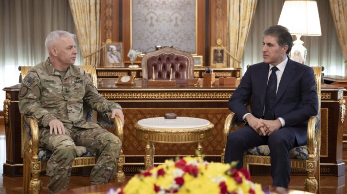 Kurdistan Region President Nechirvan Barzani held a meeting with a coalition commander to discuss regional security and ongoing efforts against ISIS. The talks focused on strengthening cooperation between local and international forces.