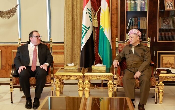 ERBIL – President Masoud Barzani met on Sunday with US Embassy Charge d’Affaires Joshua Harris in Erbil to discuss recent developments in Syria and a landmark agreement involving the Syrian Democratic Forces. During the meeting, both sides emphasized Erbil’s role in supporting dialogue and political engagement between Kurdish-led forces and Damascus.
