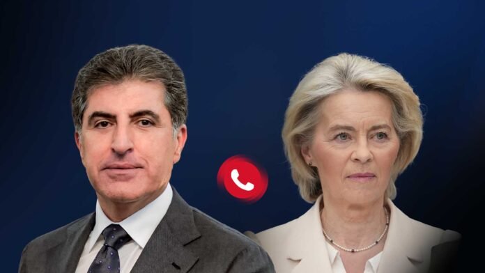 ERBIL, Kurdistan Region – President Nechirvan Barzani held a phone call with European Commission President Ursula von der Leyen to discuss rising regional tensions and international efforts to maintain stability.