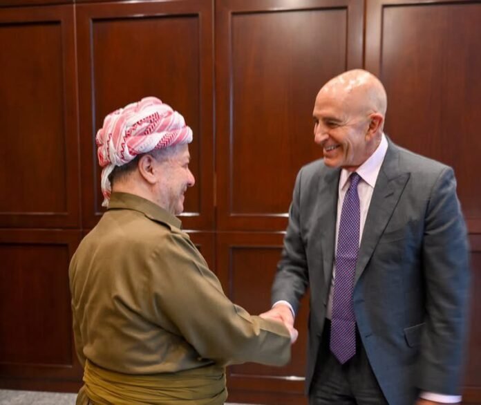 Tom Barrack, US Ambassador to Turkey and Special Envoy for Syria, met President Masoud Barzani to discuss Iraq’s political stability, regional developments, and US–Kurdistan cooperation. The talks focused on ongoing efforts to reduce tensions and strengthen institutional governance.